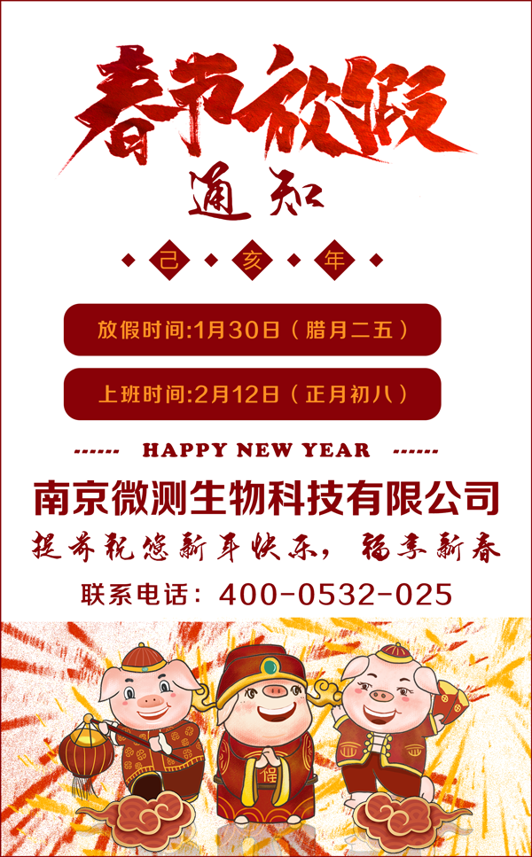 公司春節(jié)假期定于:2019年1月30日起至2019年2月11日止,共放假13天,放假期間暫停發(fā)貨;2019年2月12日(年初八)上班并且恢復發(fā)貨。為避免年前年后產品使用緊缺,望客戶朋友們提前做好訂貨和備貨安排,注意查收在途貨物,以免影響到您的正常使用。